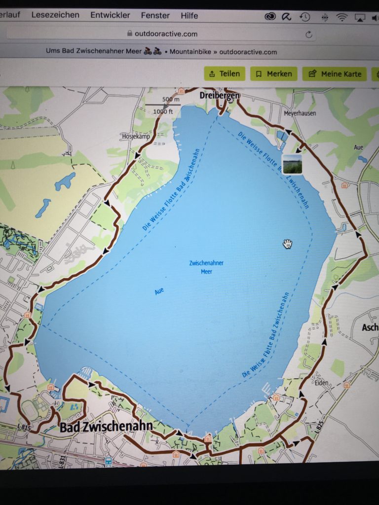 Eine schöne Tour haben wir vor ein paar Wochen unternommen, gestartet in Bad Zwischenahn. Einmal rund um das Zwischenahner Meer, so um die 25 km. Alle Wege waren Waldwege, kein Asphalt oder Pflaster, nein es hat richtig Spass gemacht. Zwischendurch konnten wir eine wunderschöne Aussicht auf das Zwischenahner Meer genießen.